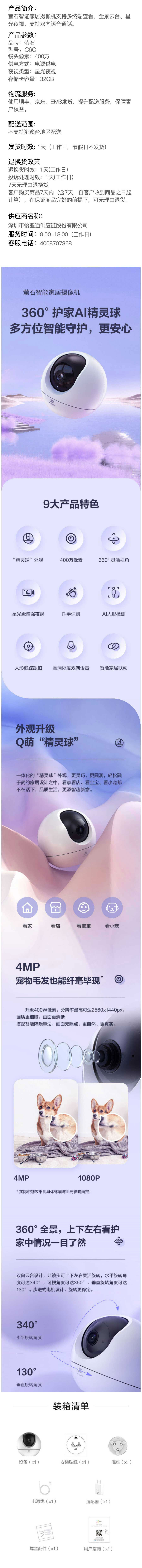 萤石C6C智能家居摄像机2K+星光增强版+32G存储卡查看活动入口>
