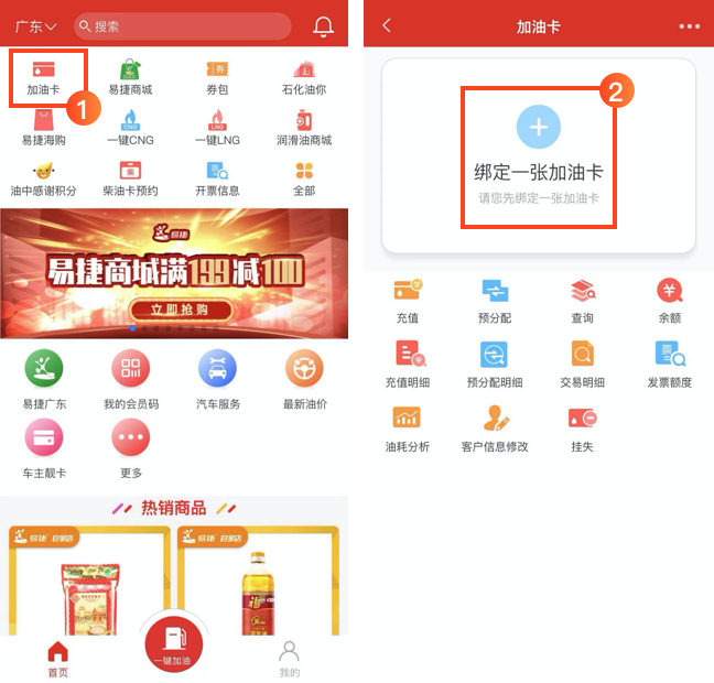 下载“中国石化加油卡掌上营业厅”APP,首页选择