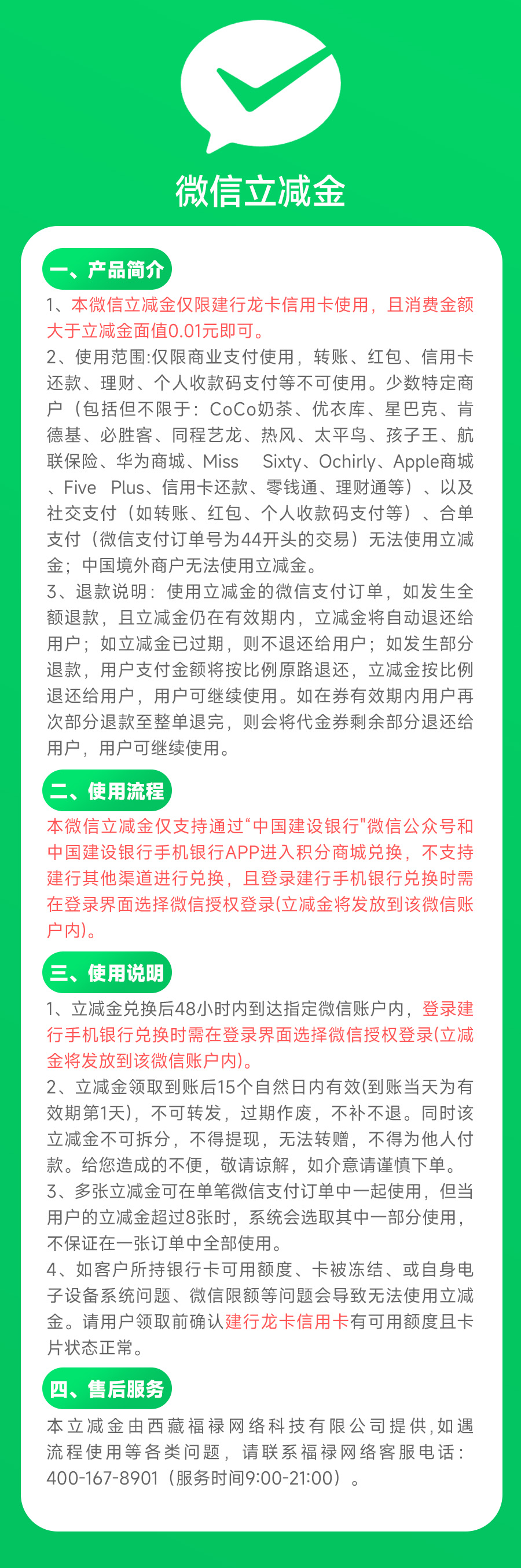 微信立减金50元面值(仅限建行龙卡信用卡使用)